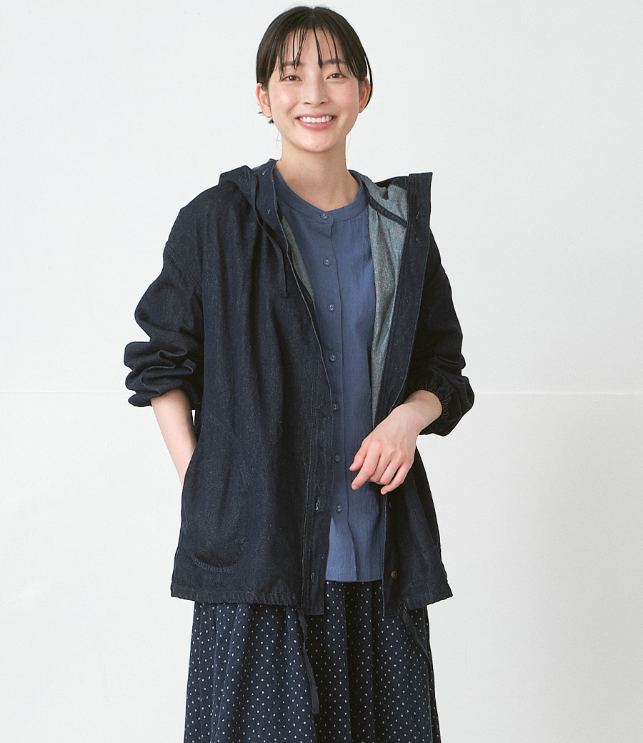 季節の変わり目に軽く羽織れる一枚として、日常のコーディネートに取り入れやすく、ナチュラルなスタイルを心地よく楽しめます。