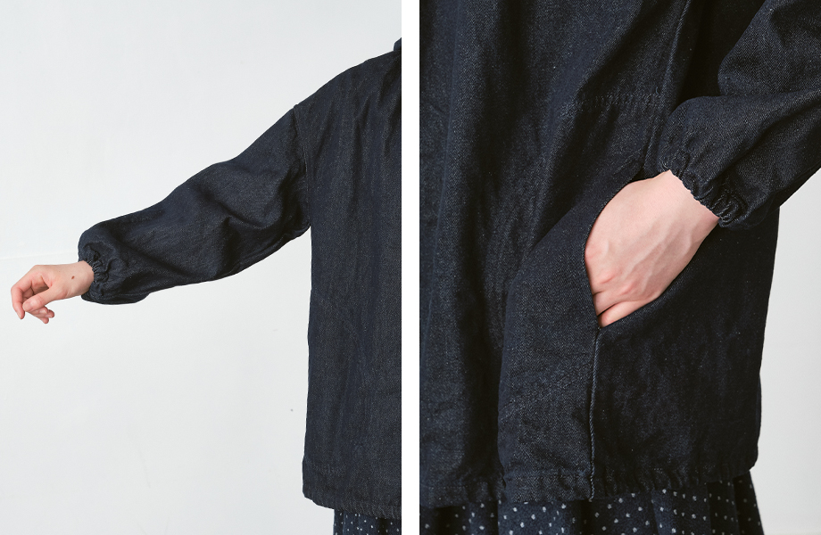 袖口はやわらかくフィットするゴム仕様で、手首まわりをすっきりと見せながら、自然なふんわり感を生み出します。
