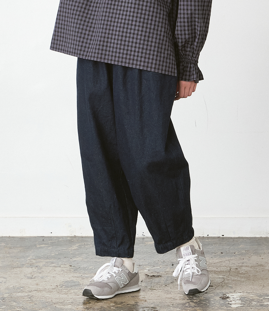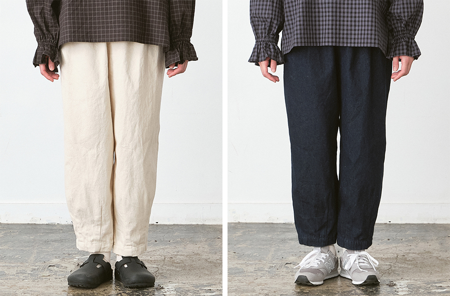 ゆったりとした穿き心地ながらも、裾に向かって自然に細くなるシルエットが魅力の「裾ダーツパンツ」。