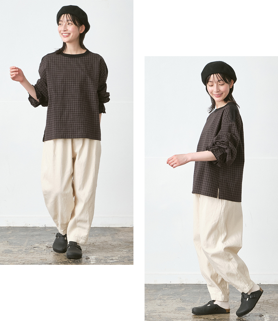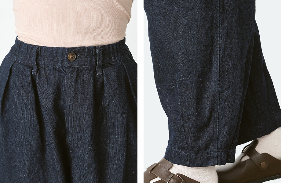 ウエストはストレスフリーな総ゴム仕様で、リラックス感のある穿き心地。