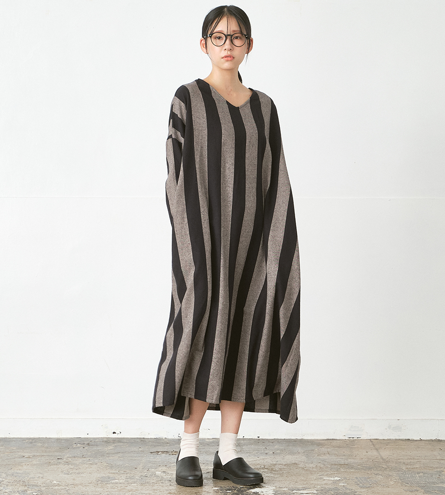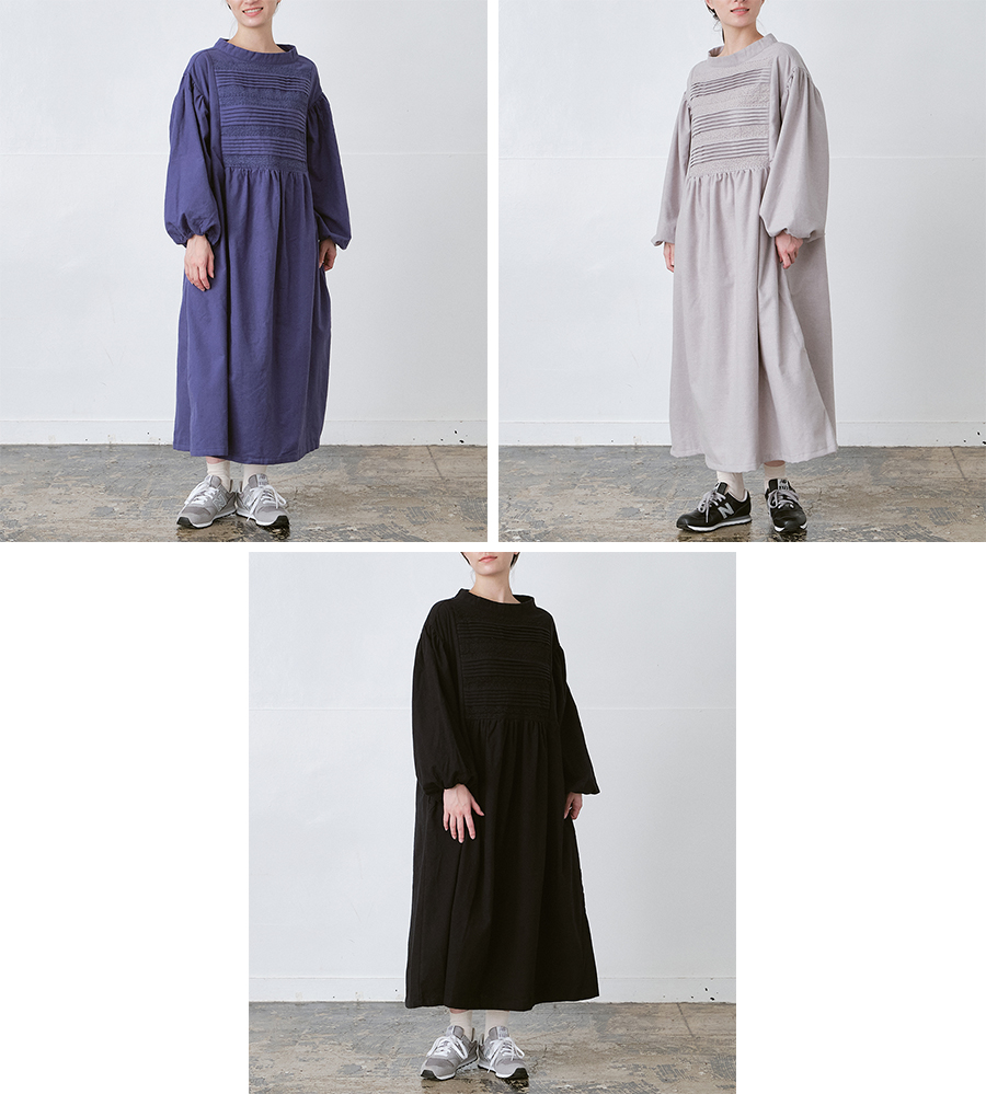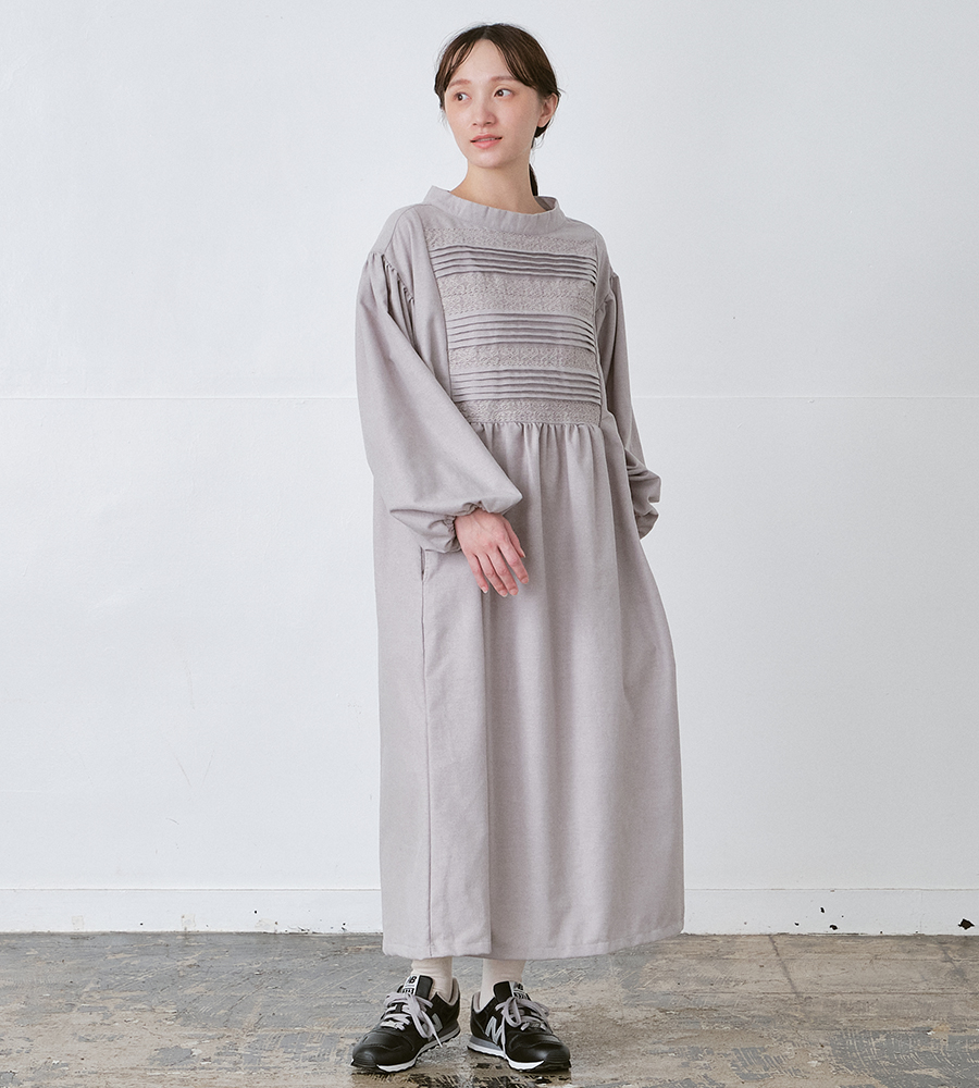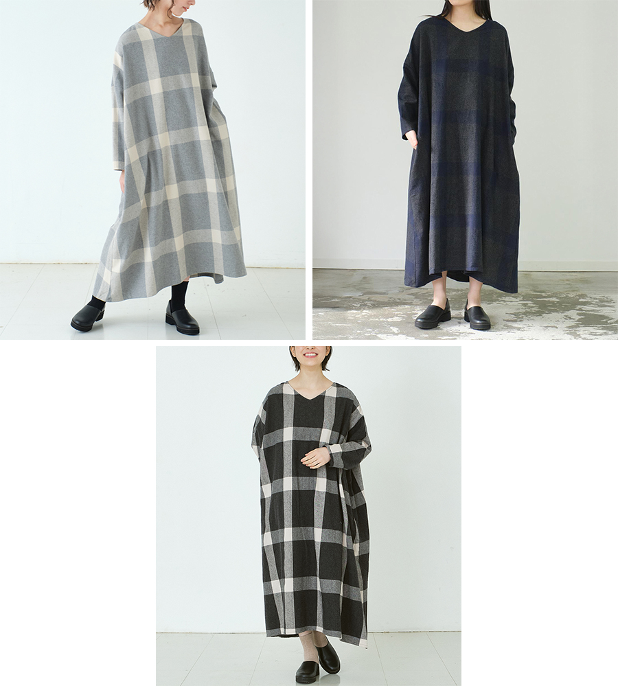 日常に寄り添う、あたたかいワンピーススタイルです。