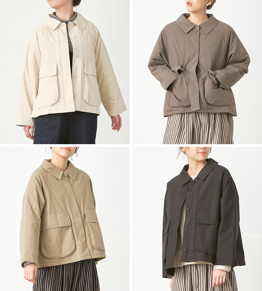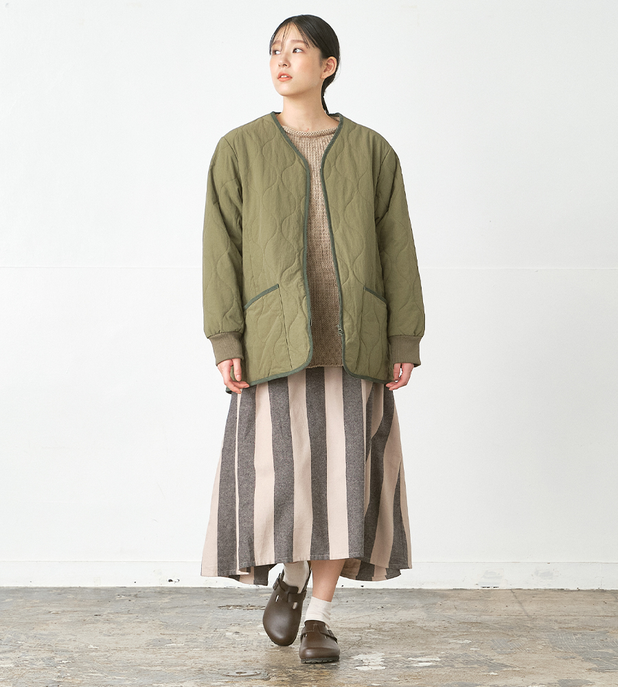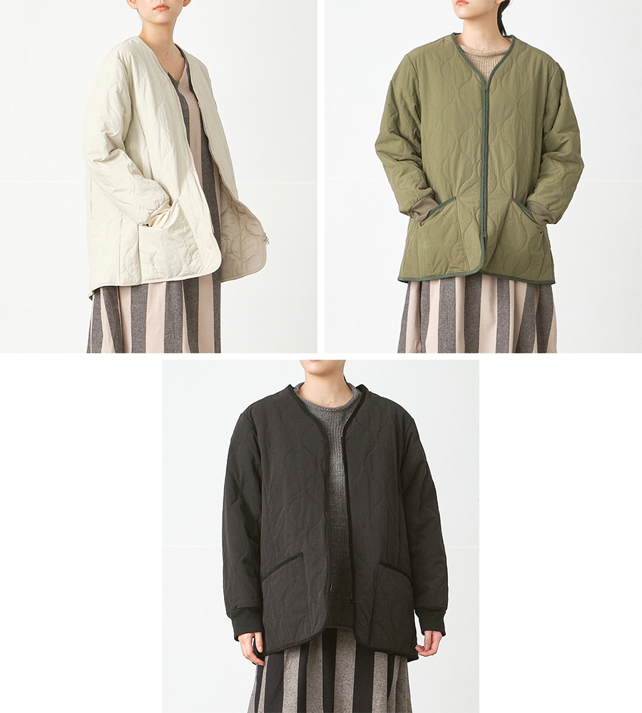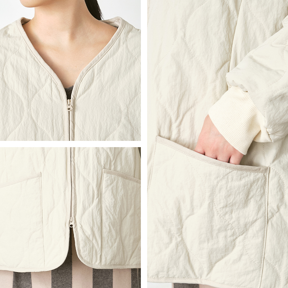 中わたをしっかり支え、暖かさを保ちながら、丸みのある表情でコーディネートをやさしく見せてくれます。