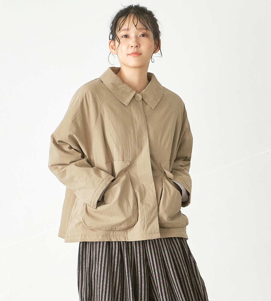 シンプルな中にも上品さが漂う、軽やかなショート丈のコート。