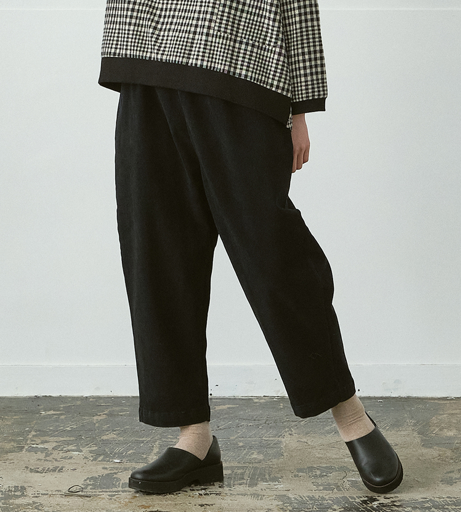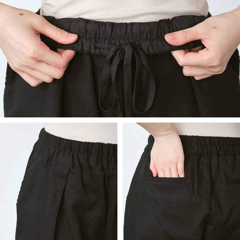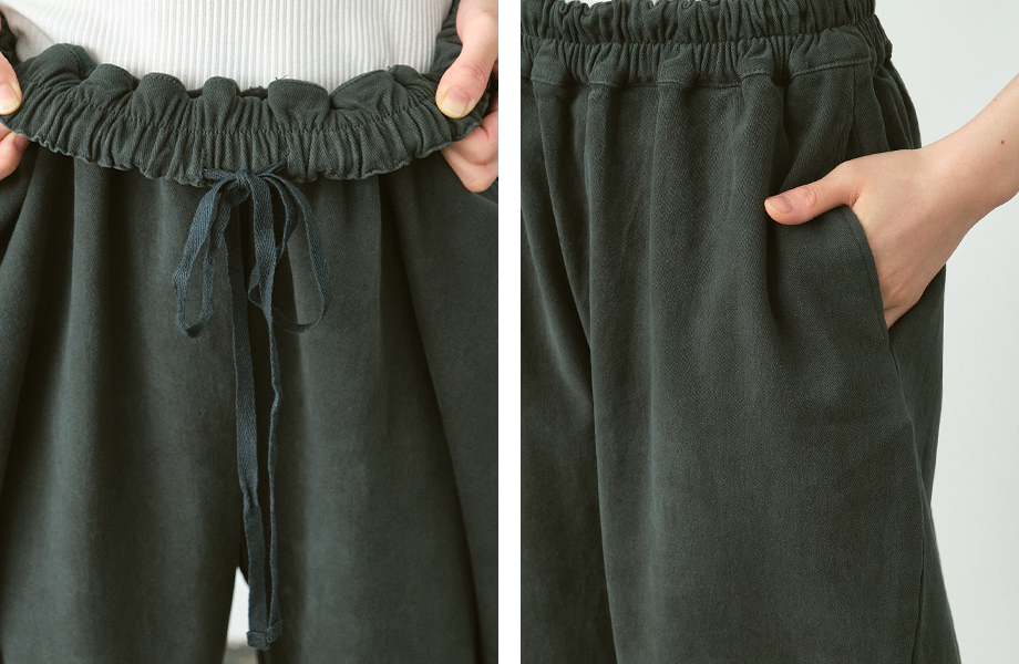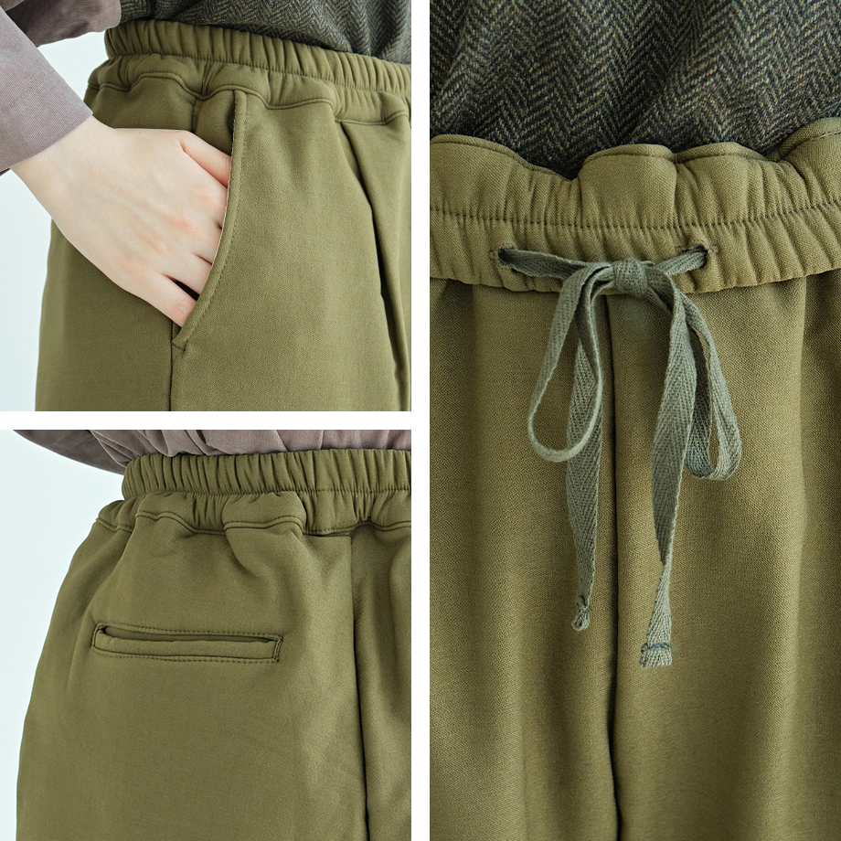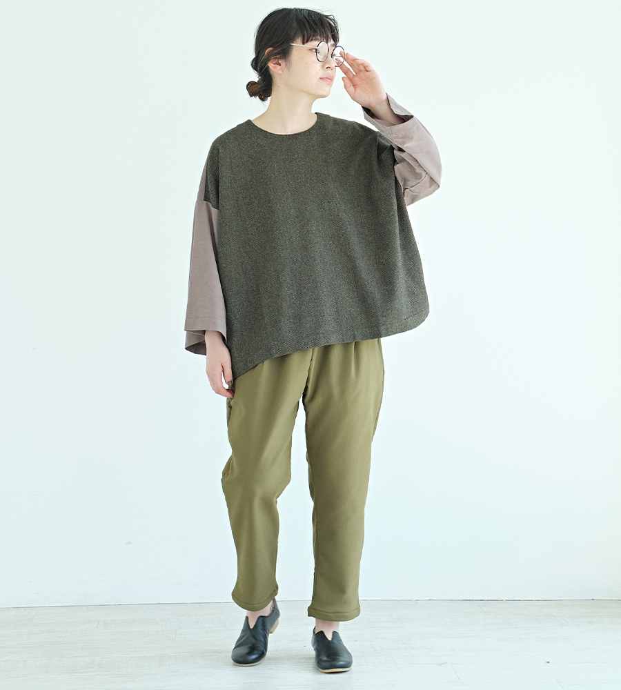 裏起毛やあたたかみのある生地を使用し、寒い日でも安心して着られるパンツ。