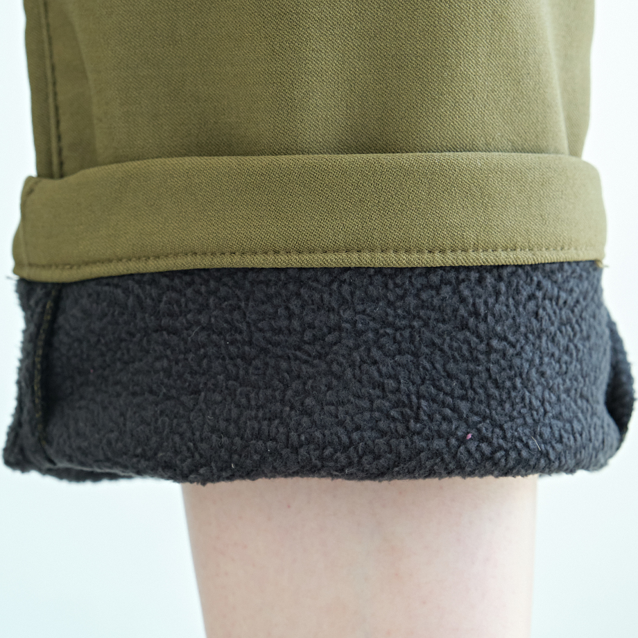 このパンツには、裏側に保温性と肌触りの良さに優れた起毛素材を組み合わせており、暖かく快適なはき心地が魅力です。