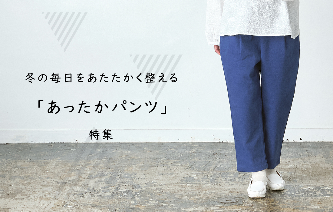 「あったかパンツ」とは、寒い季節の暮らしを快適にするために作られた、ぬくもり仕様のボトムスのこと。