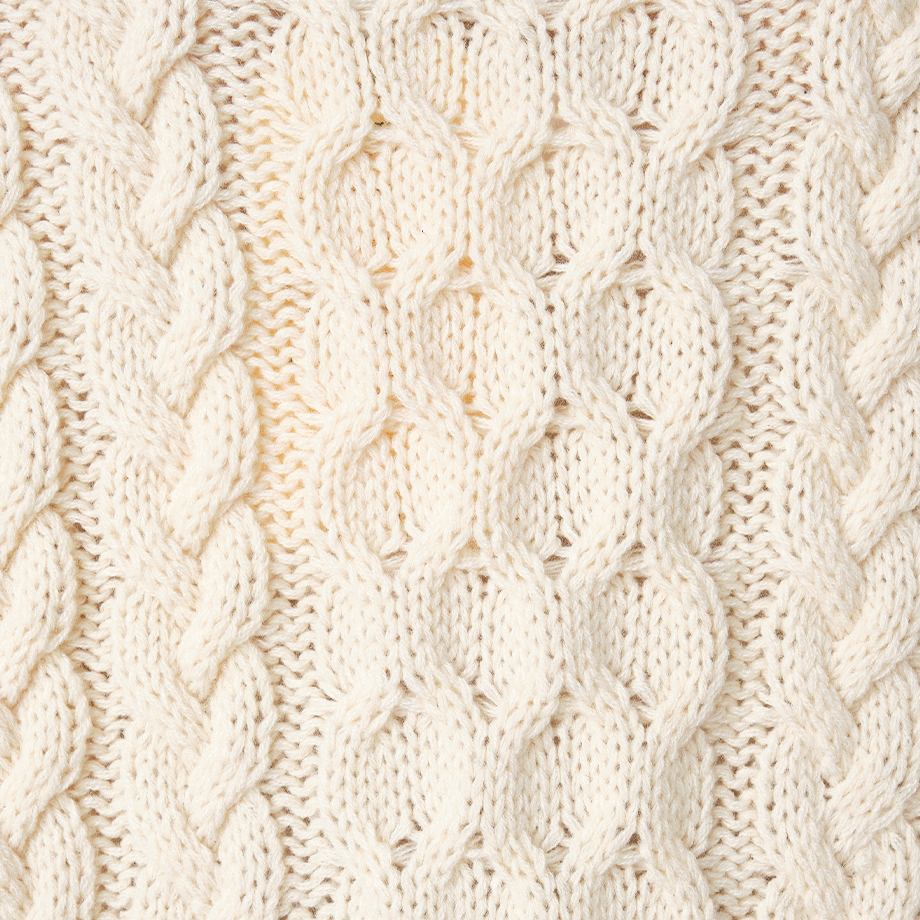 アラン柄は、アイルランドのアラン諸島が発祥とされ、 フィッシャーマンズセーターの編み方として知られる伝統的なニット模様。