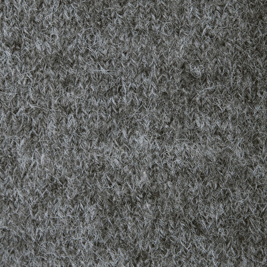 毛足の長い糸をミックスして編み上げた、モヘア調のニット素材を使用。