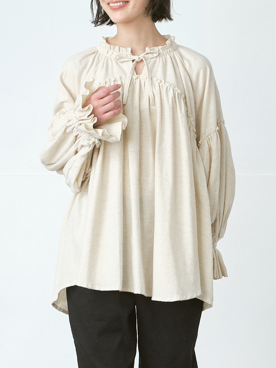 フリルフレアブラウス 綿トップビエラ