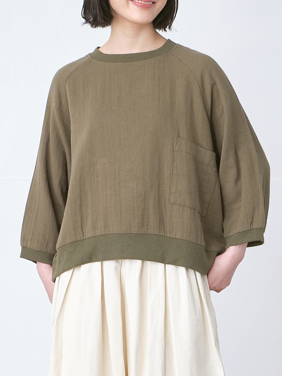 リブプルオーバーブラウス 綿ツイルWフェイス