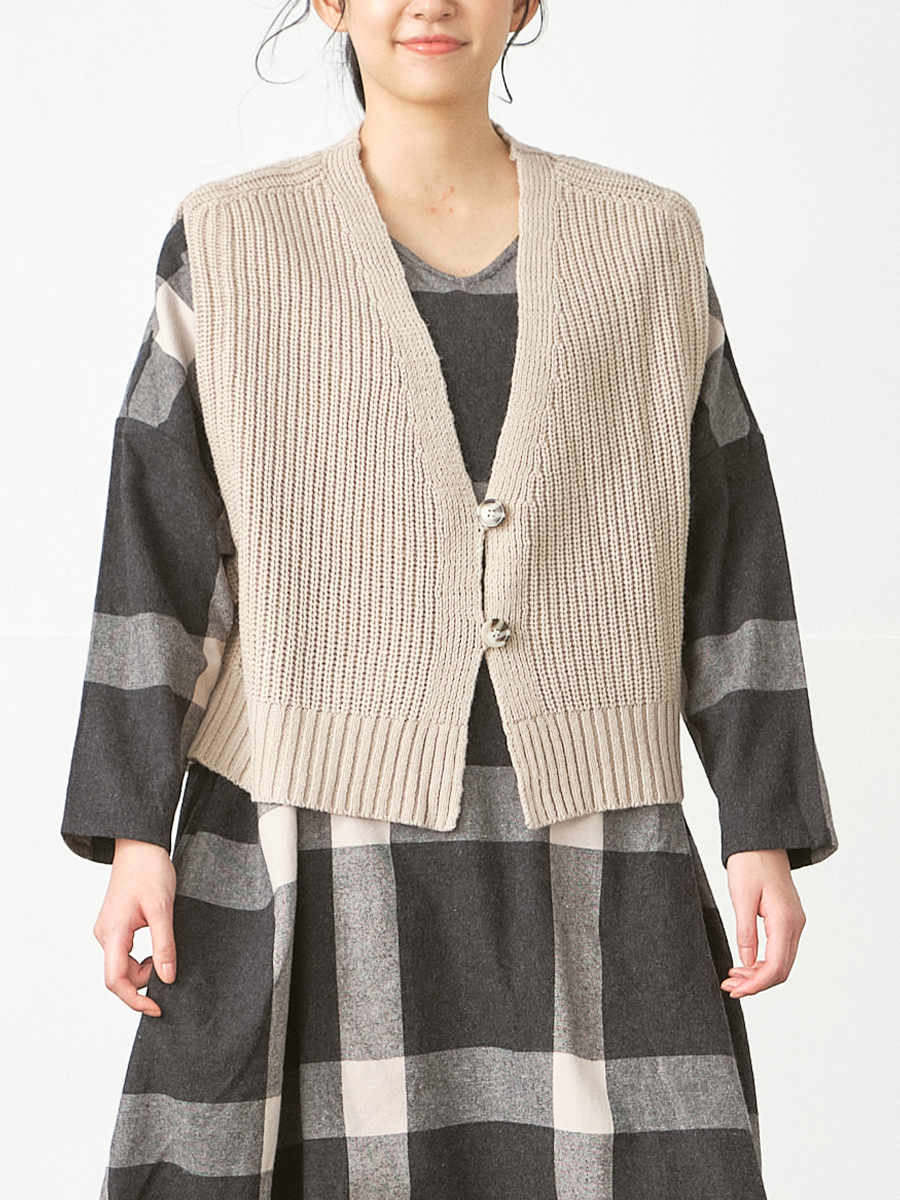 前ボタンニットベスト