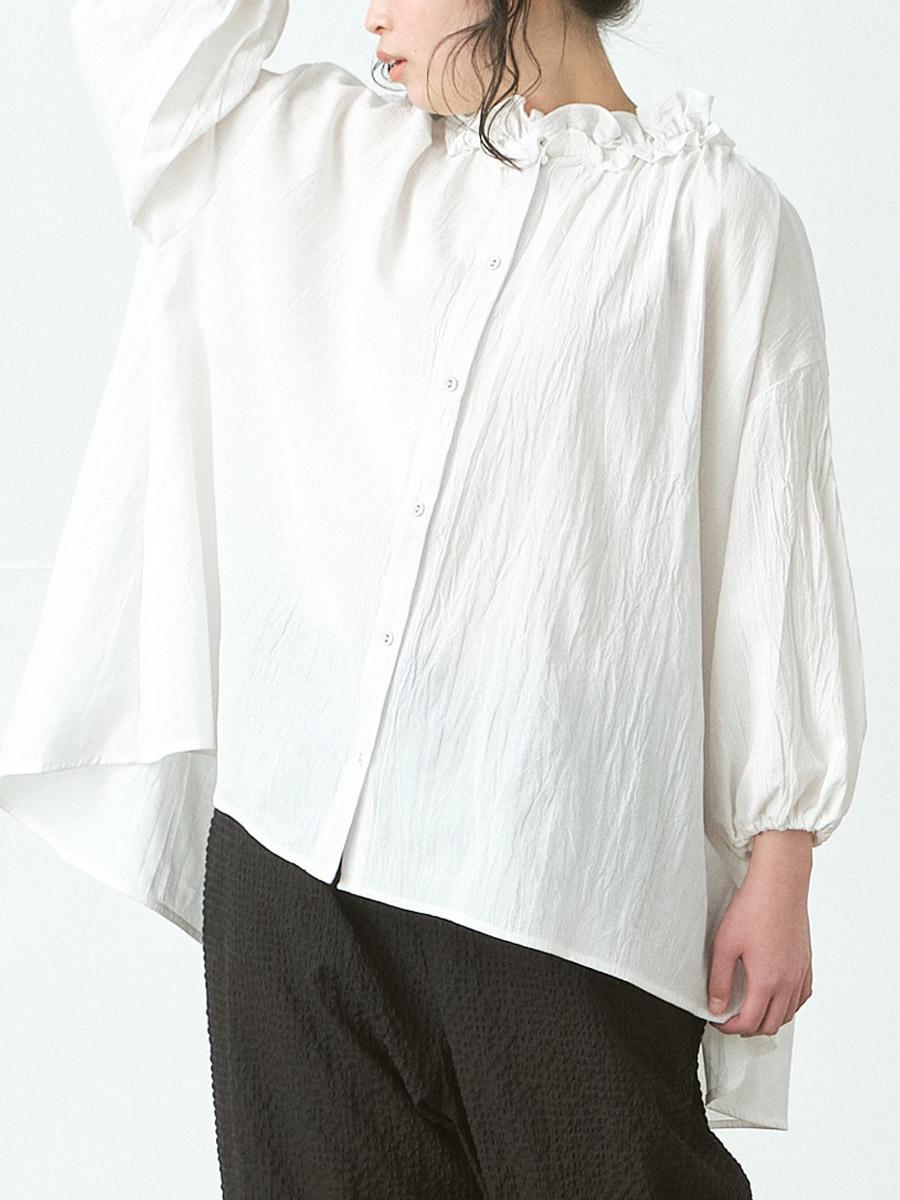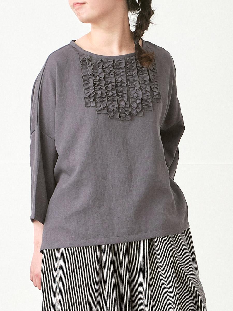 フロントフリルプルオーバーブラウス T/Rスラブ